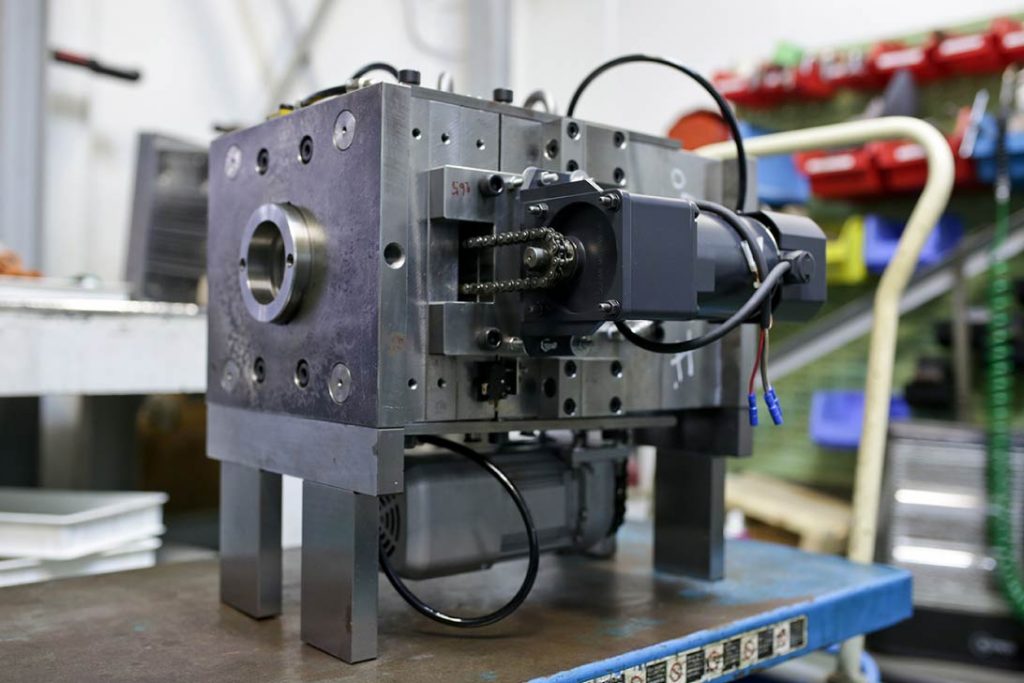 ネジ抜きモーターを単動で2回路動かし、1製品に2か所のネジの形成が可能です。